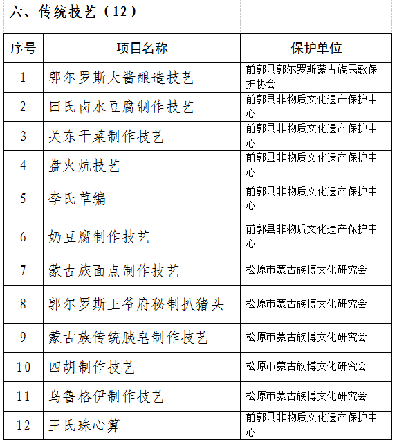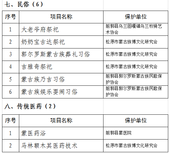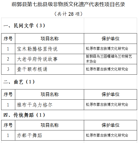 附件:《前郭爾羅斯蒙古族自治縣人民政府關于公布第七批縣級非物質文化遺產代表性項目名錄的通知》